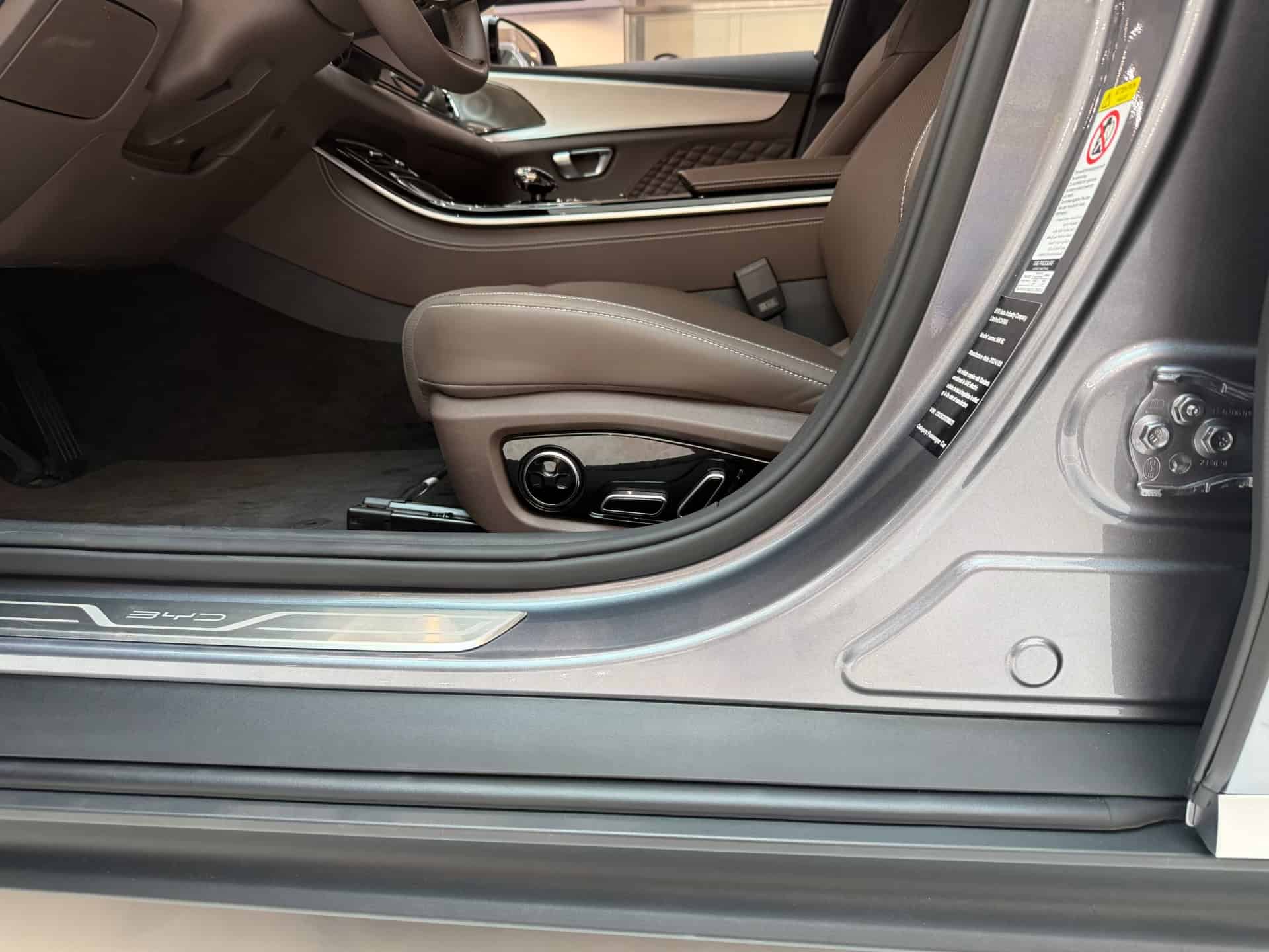 Gương chiếu hậu mỏng tích hợp đèn xi-nhan, cảnh báo điểm mù và chức năng sấy gương tiện lợi. Tay nắm cửa dạng ẩn giúp giảm lực cản gió và mang lại vẻ ngoài gọn gàng, tinh tế cho chiếc sedan điện này.